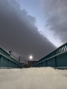 マイ自転車!新開橋!は、雪が積もっていたので歩いて店まで𝕘𝕠(ง ˙˘˙ )ว