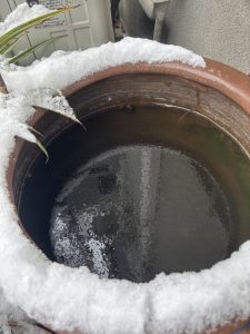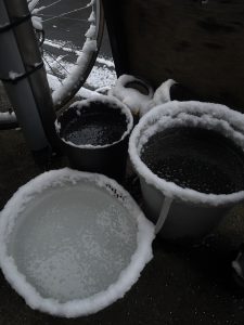 午前中の雪⸜❄️⸝だけでメダカ🐟の寝床がシャーベット溜め水は、シッカリ凍ってしまいました(〇-〇)...